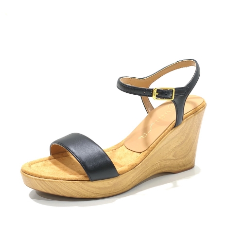 Sandalia de tiras, fabricada en piel, con cuña de 6 cm y plataforma de 1.5 cm