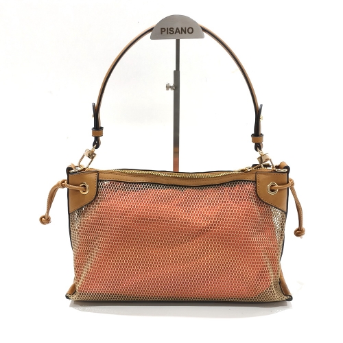 Bolso con asa corta, fabricado en material sintético con bolsa interior de tela, de medidas aproximadas de 29 cm x 19 cm