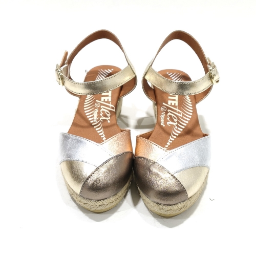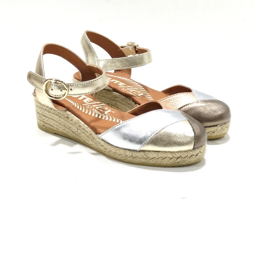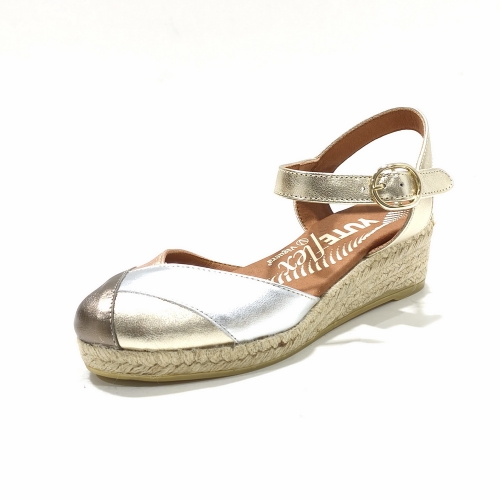 Alpargata puntera cerrada, fabricada en piel, con cuña de 3 cm de yute natural