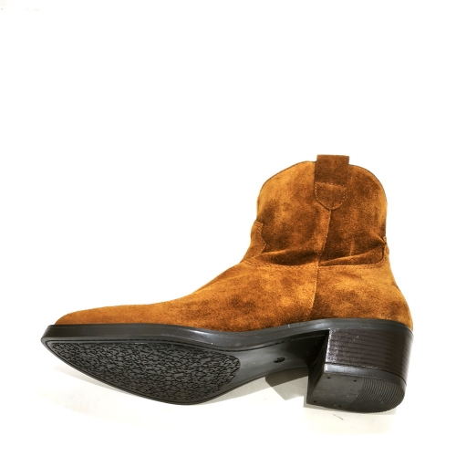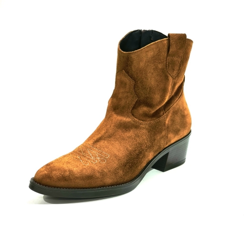 Botín cowboy con cremallera lateral, fabricado en serraje, con tacón cubano de 5 cm