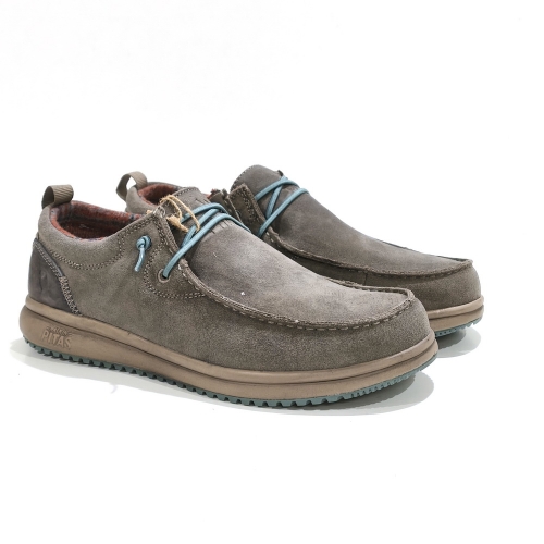 Zapato con cordones elásticos, fabricado en serraje, con plantillas extraíbles y suela de goma