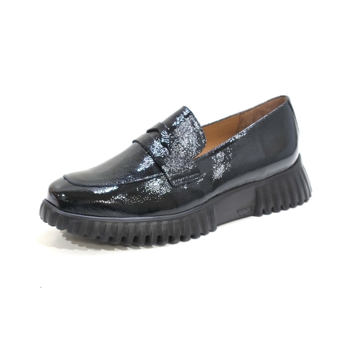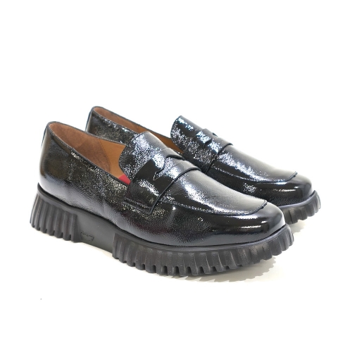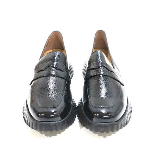 Zapato mocasín, fabricado en charol, con cuña de goma de 3 cm y plataforma de 2 cm