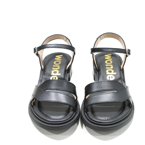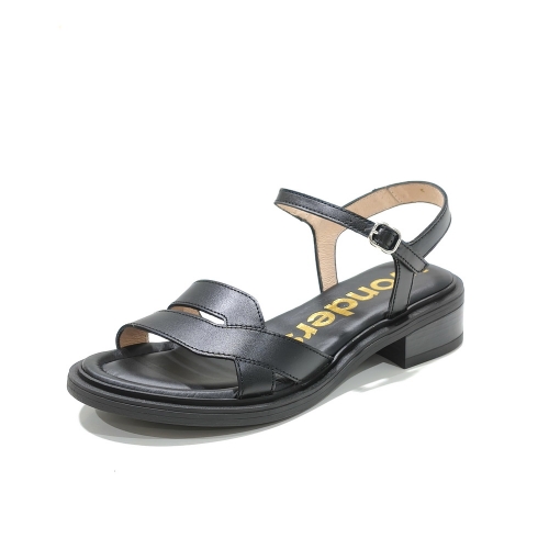 Sandalia con tira en el empeine, fabricada en piel, con suela de goma y tacón de 2 cm