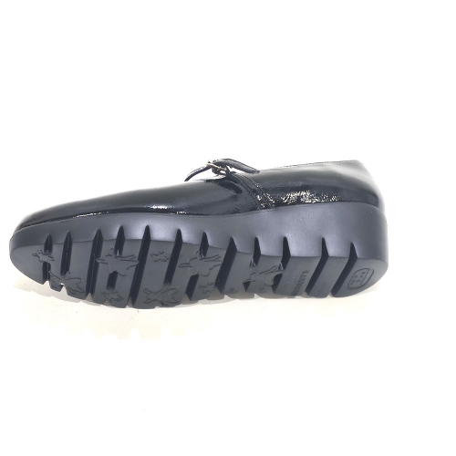 Zapato Merceditas, fabricado en charol, con cuña de 5 cm y plataforma de 2 cm de goma