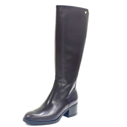 Bota de caña alta con cremallera lateral, fabricada en piel con la parte trasera con elástico, con tacón de 4 cm y suela de goma