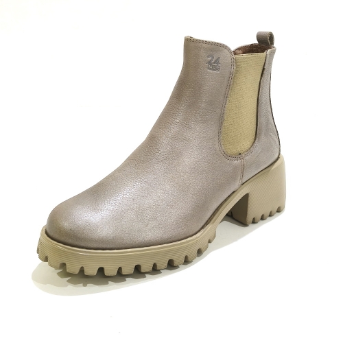 Botín con cremallera y elástico lateral, fabricado en piel, con tacón de goma de 4 cm
