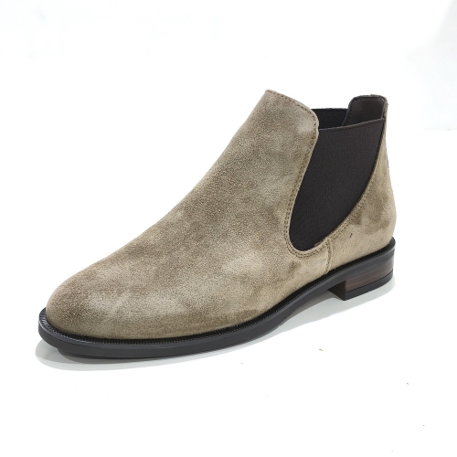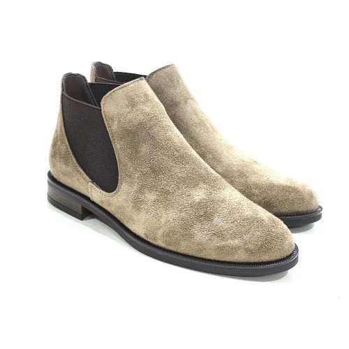 Botín chelsea plano, fabricado en serraje, con suela de goma