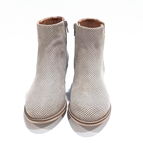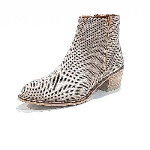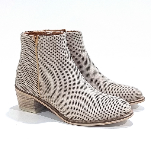 Botín con cremallera interior, fabricado en nobuk picado, con tacón de 3 cm