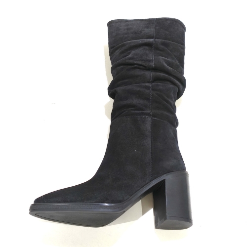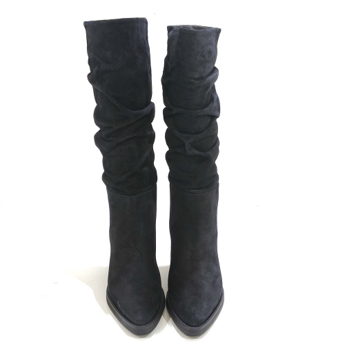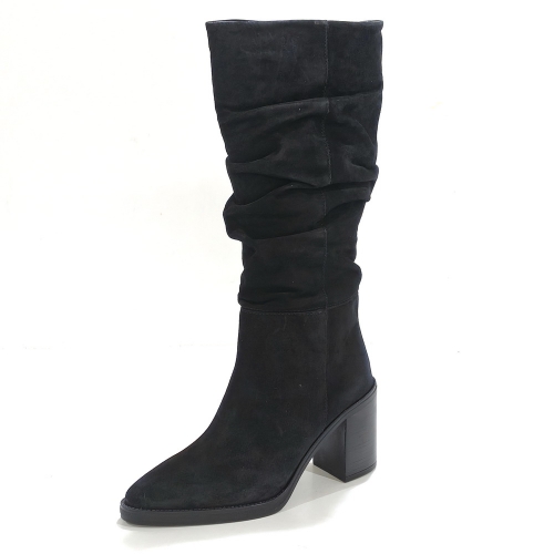 Bota de caña arrugada, fabricada en serraje, con tacón de 5 cm