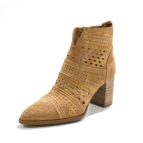 Botín con cremallera interior, fabricado en ante troquelado, con tacón de 6 cm y suela de goma