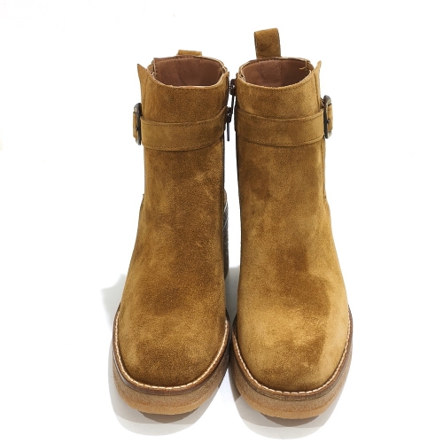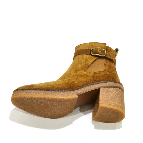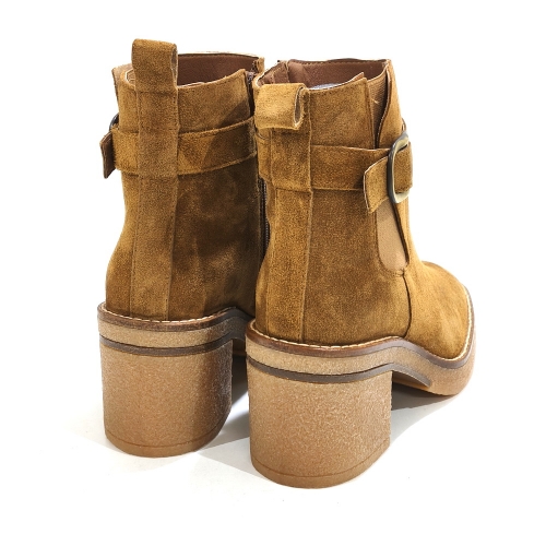 Botín con cremallera lateral y hebilla, fabricado en ante, con tacón de 6 cm y plataforma de 1.5 cm de goma