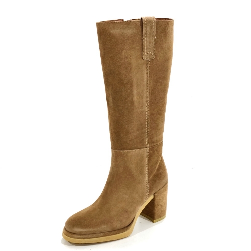 Bota con cremallera lateral, fabricada en ante, con tacón de 6 cm y plataforma de 1.5 cm de goma