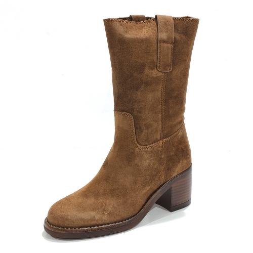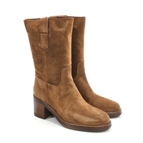 Bota de media caña con cremallera lateral, fabricada en serraje, con tacón de 5 cm y suela de goma