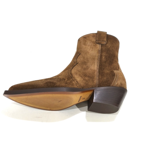 Botín cowboy con cremallera lateral, fabricado en ante, con tacón cubano de 4 cm