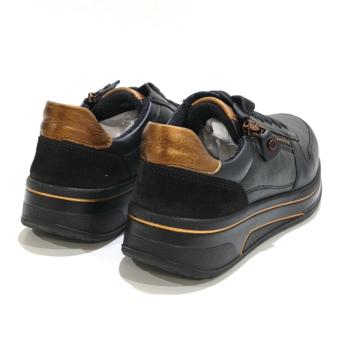 Deportivo de cordoneras con cremallera lateral, fabricado en piel, con plantillas extraíbles y suela de goma