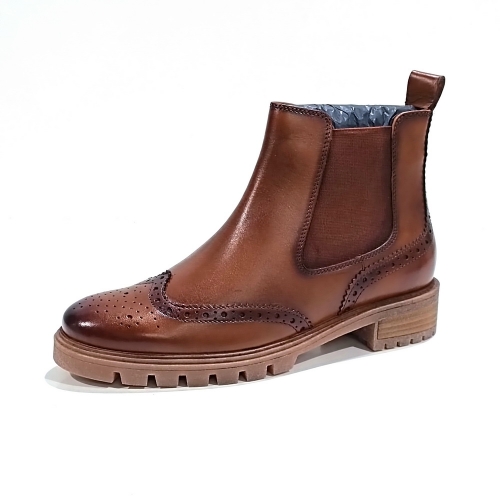 Botín tipo chelsea, fabricado en piel picada, con suela de goma