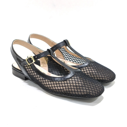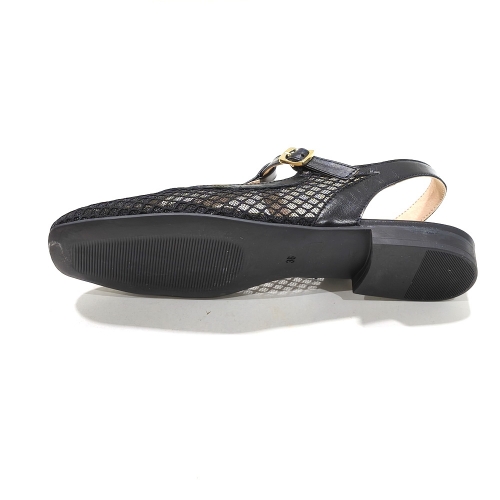 Zapato descubierto de talón, fabricado en maya textil con interior de piel, con suela de goma