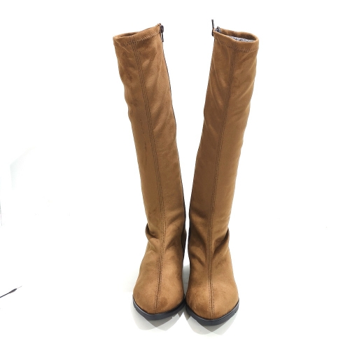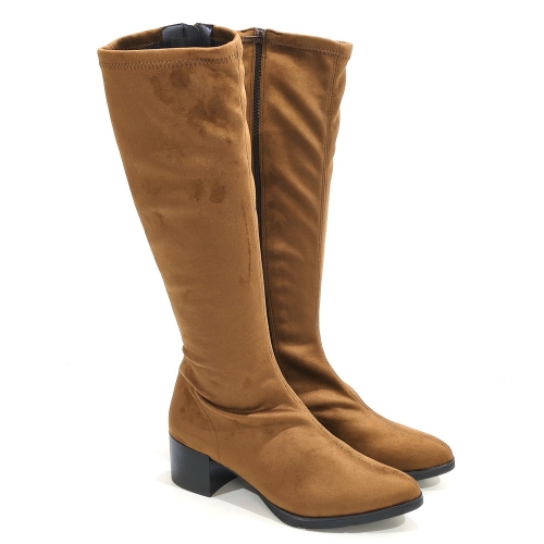 Bota de caña alta con cremallera interior, fabricada en licra elástica, con tacón de 4 cm y suela de goma
