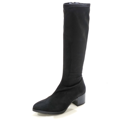 Bota de caña alta con cremallera interior, fabricada en licra elástica, con tacón de 4 cm y suela de goma