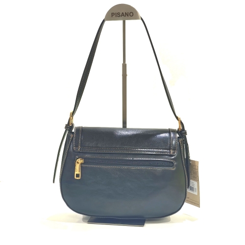 Bolso de un asa con estribo metálico, fabricado en material sintético, de medidas aproximadas de 27 cm x 17 cm