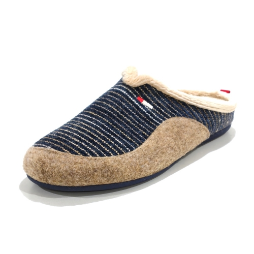 Zapatilla de casa descubierta de talón, fabricada en textil, con suela de goma antideslizante