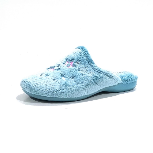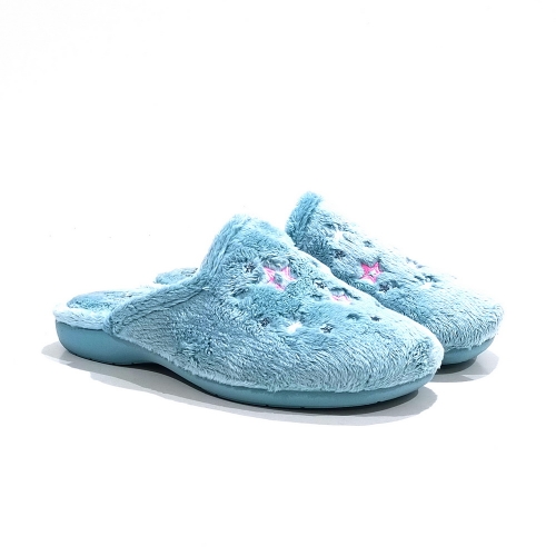 Zapatilla descubierta de talón, fabricada en textil con forro interior, con suela de goma