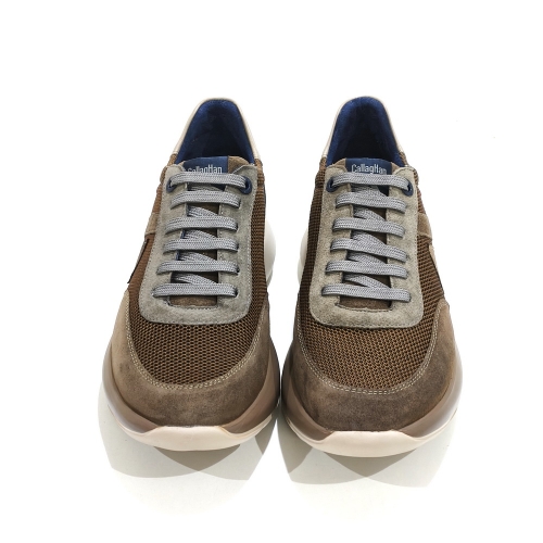Zapato de cordoneras, fabricado en ante y tela, con plantillas extraíbles y suela de goma con sistema adaptactión