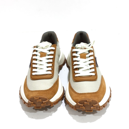 Zapato de cordoneras, fabricado en tela y serraje, con plantillas extraíbles y suela de goma Vibram