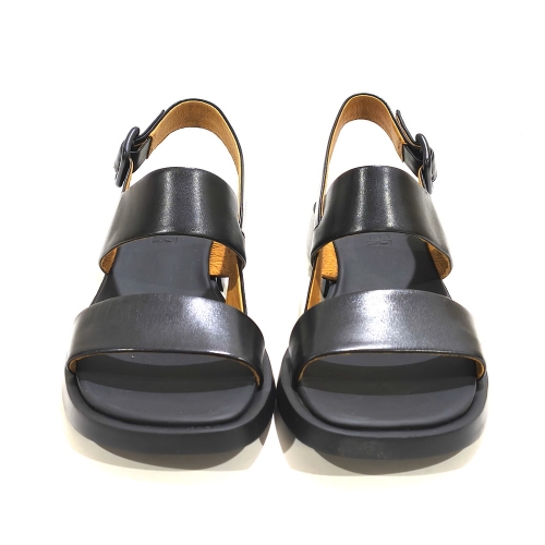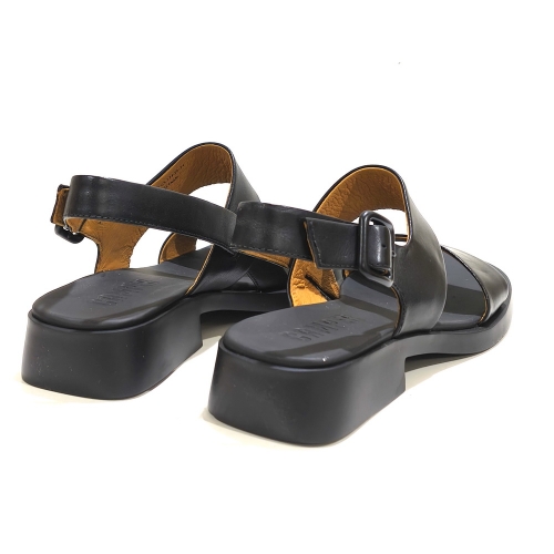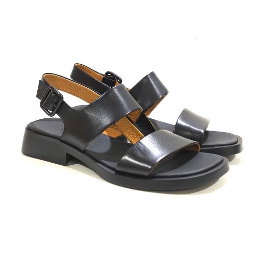 Sandalia de tiras  con hebilla, fabricada en piel, con suela de goma
