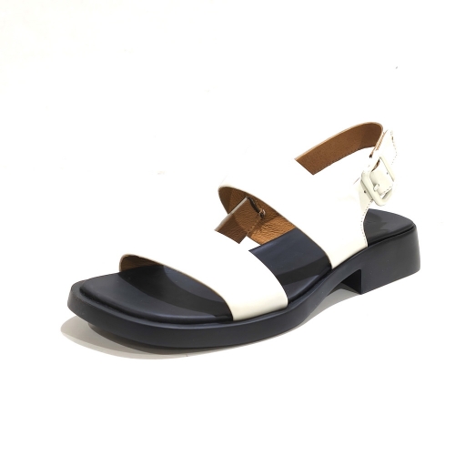 Sandalia de tiras  con hebilla, fabricada en piel, con suela de goma