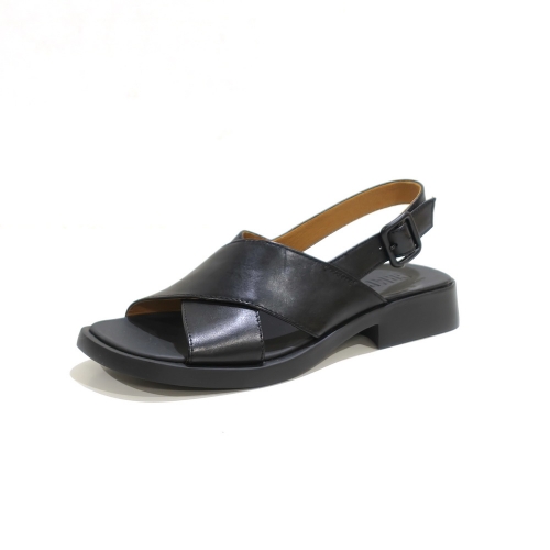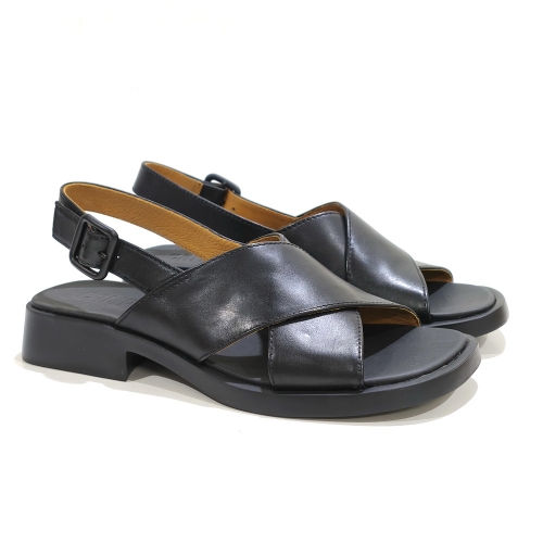 Sandalia de tiras cruzadas, fabricada en piel, con tacón de 2 cm y suela de goma
