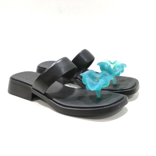 Sandalia de dedo, fabricada en piel, con suela de goma con tacón de 2 cm