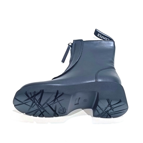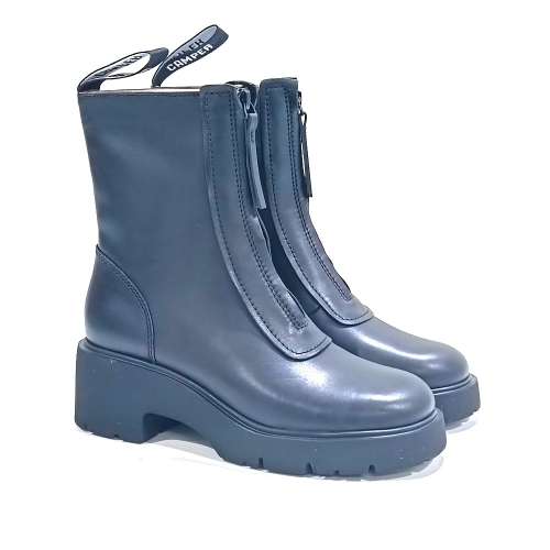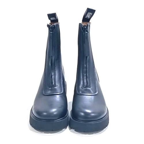 Botín con cremallera central, fabricado en piel, con tacón de 3 cm y suela de goma Eva