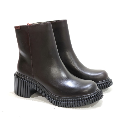 Botín con cremallera lateral, fabricado en piel, con tacón de 5 cm y plataforma de 2 cm de goma