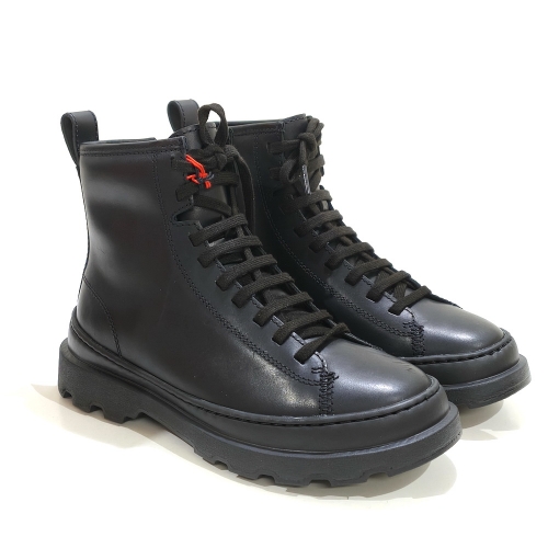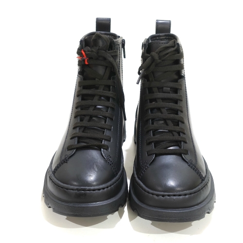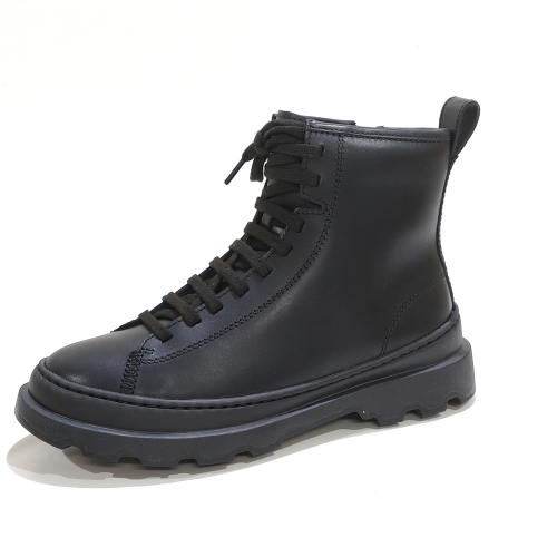 Botín de cordoneras con cremallera lateral, fabricado en piel, con suela de goma