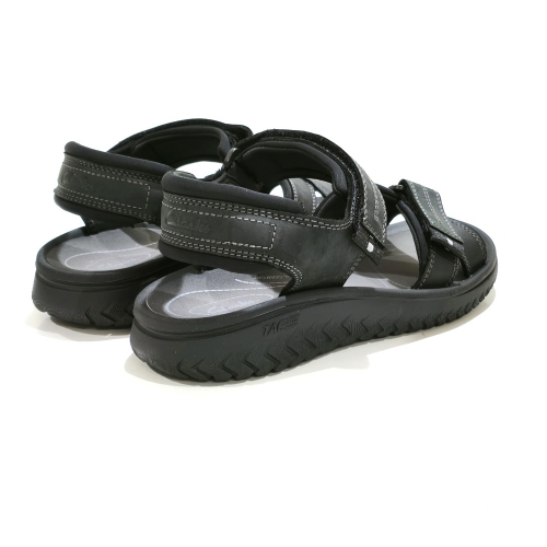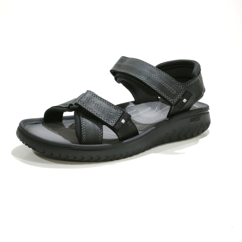 Sandalia de tiras ajustables con cinta textil adhesiva, fabricada en piel, con suela de goma