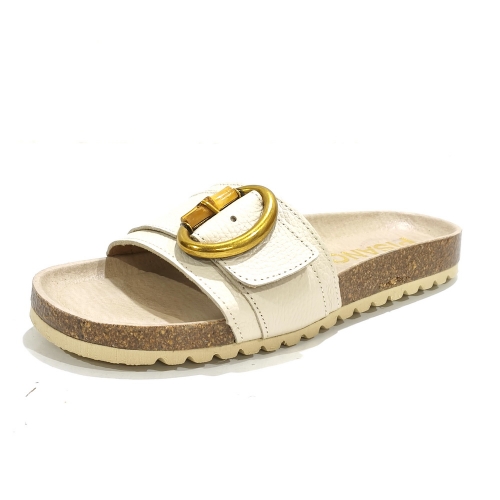 Sandalia de pala con hebilla, fabricada en piel, con suela de goma