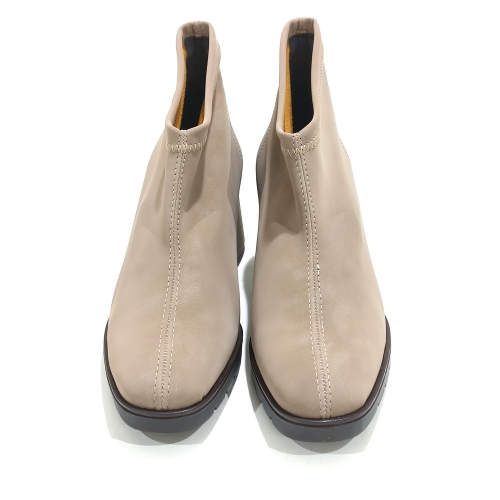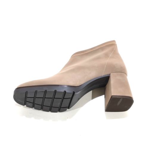 Botín caña corta, fabricado en licra elástica, con tacón de 5 cm y suela de goma