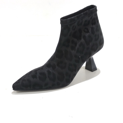 Botín con cremallera lateral, fabricado en licra animal print, con tacón de 4 cm y suela de goma
