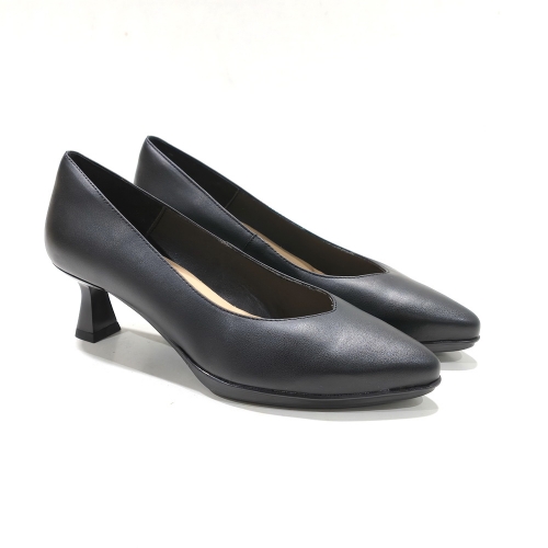 Zapato corte salón, fabricado en piel, con tacón de 5 cm y suela de goma