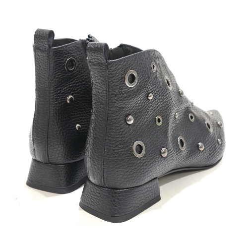 Botín con cremallera lateral, fabricado en piel, con tachas metálicas, con tacón de 2 cm y suela de goma