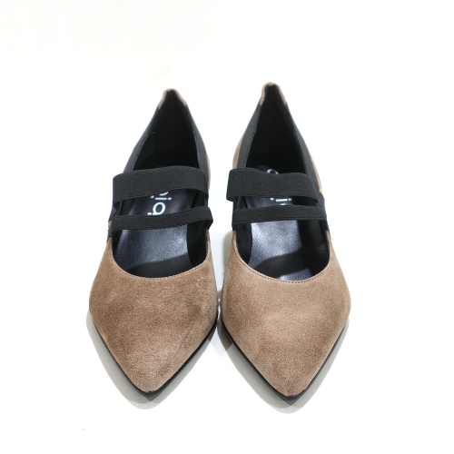 Zapato corte salón, con dos elásticos, fabricado en ante, con tacón de 4 cm y suela de goma
