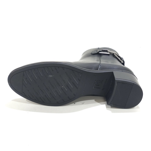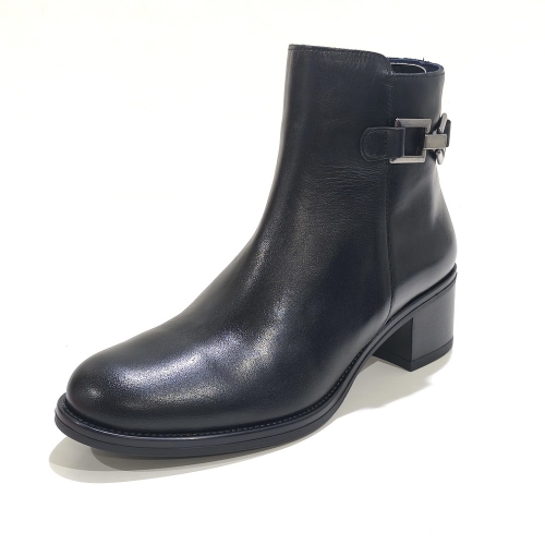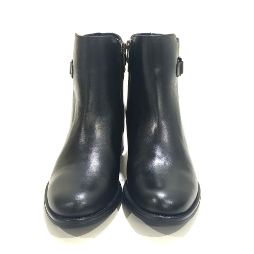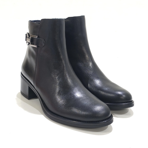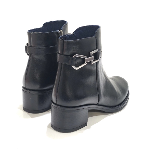 Botín con cremallera lateral y hebilla, fabricado en piel, con tacón de 4 cm y suela de goma