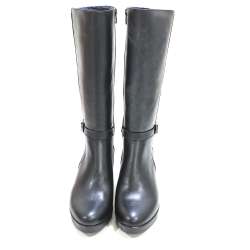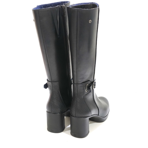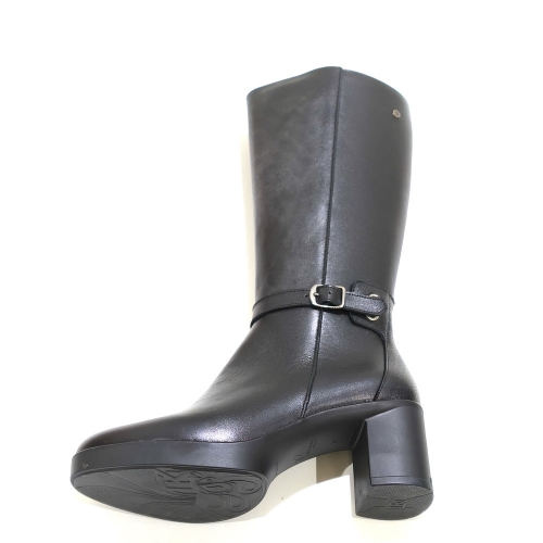 Bota con hebilla y cremallera latera, fabricada en piel, con tacón de 6 cm y plataforma de 1.5 cm