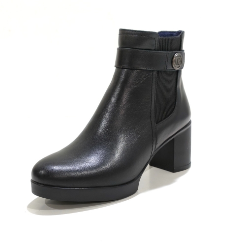 Botín con cremallera lateral, fabricado en piel, con tacón de 5 cm y plataforma de 1.5 cm de goma