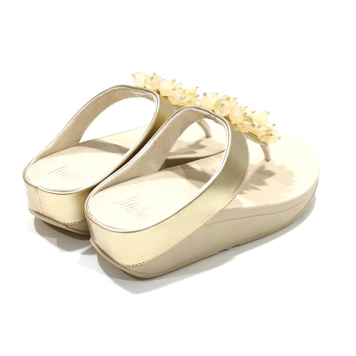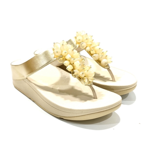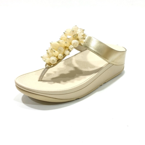 Sandalia esclava con adornos, fabricada en piel, con cuña de goma de 3 cm