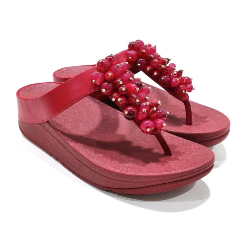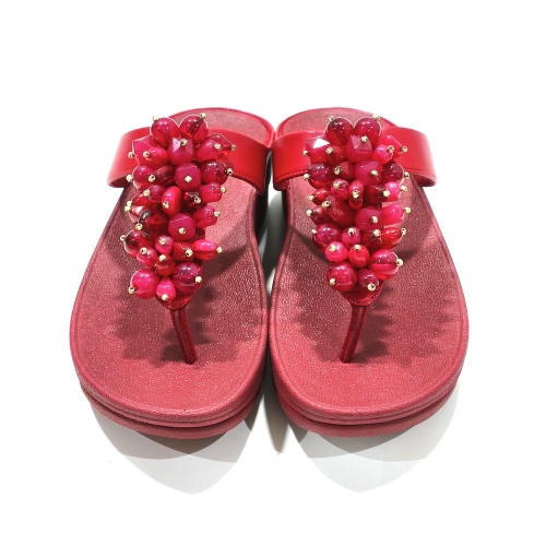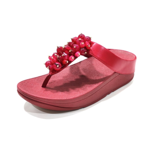 Sandalia esclava con adornos, fabricada en piel, con cuña de goma de 3 cm