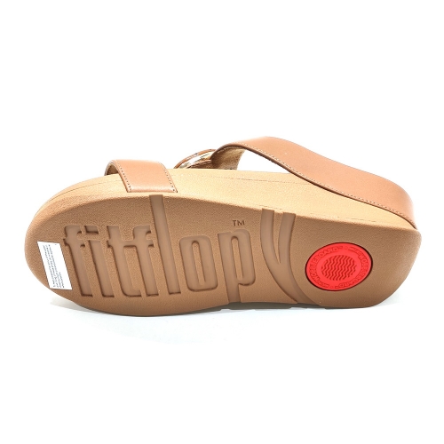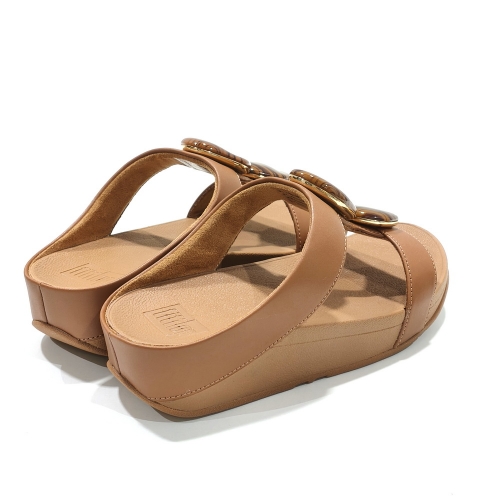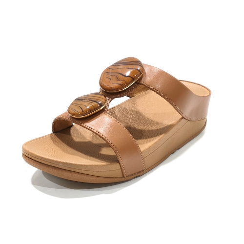 Sandalia de dos tiras con adornos, fabricada en piel, con cuña de 3 cm de goma