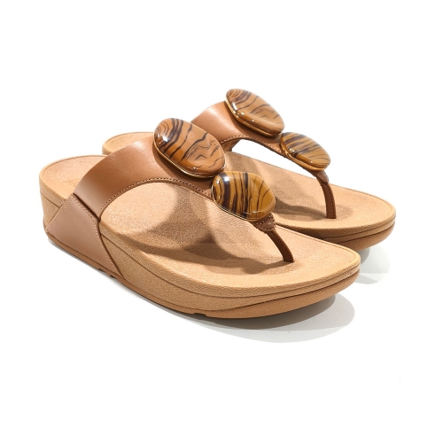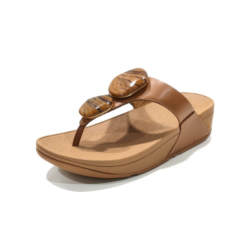 Sandalia esclava con adornos, fabricada en piel, con cuña de goma de 3 cm