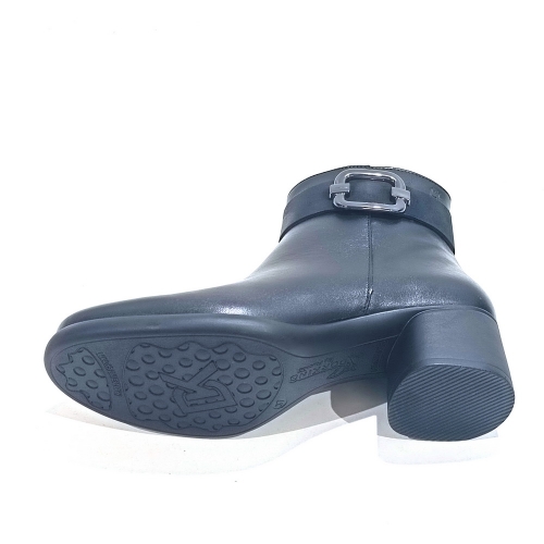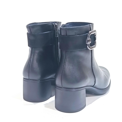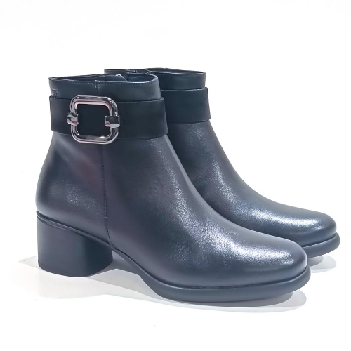 Botín con cremallera lateral y hebilla, fabricado en piel, con plantillas extraíbles y tacón de goma de 5 cm